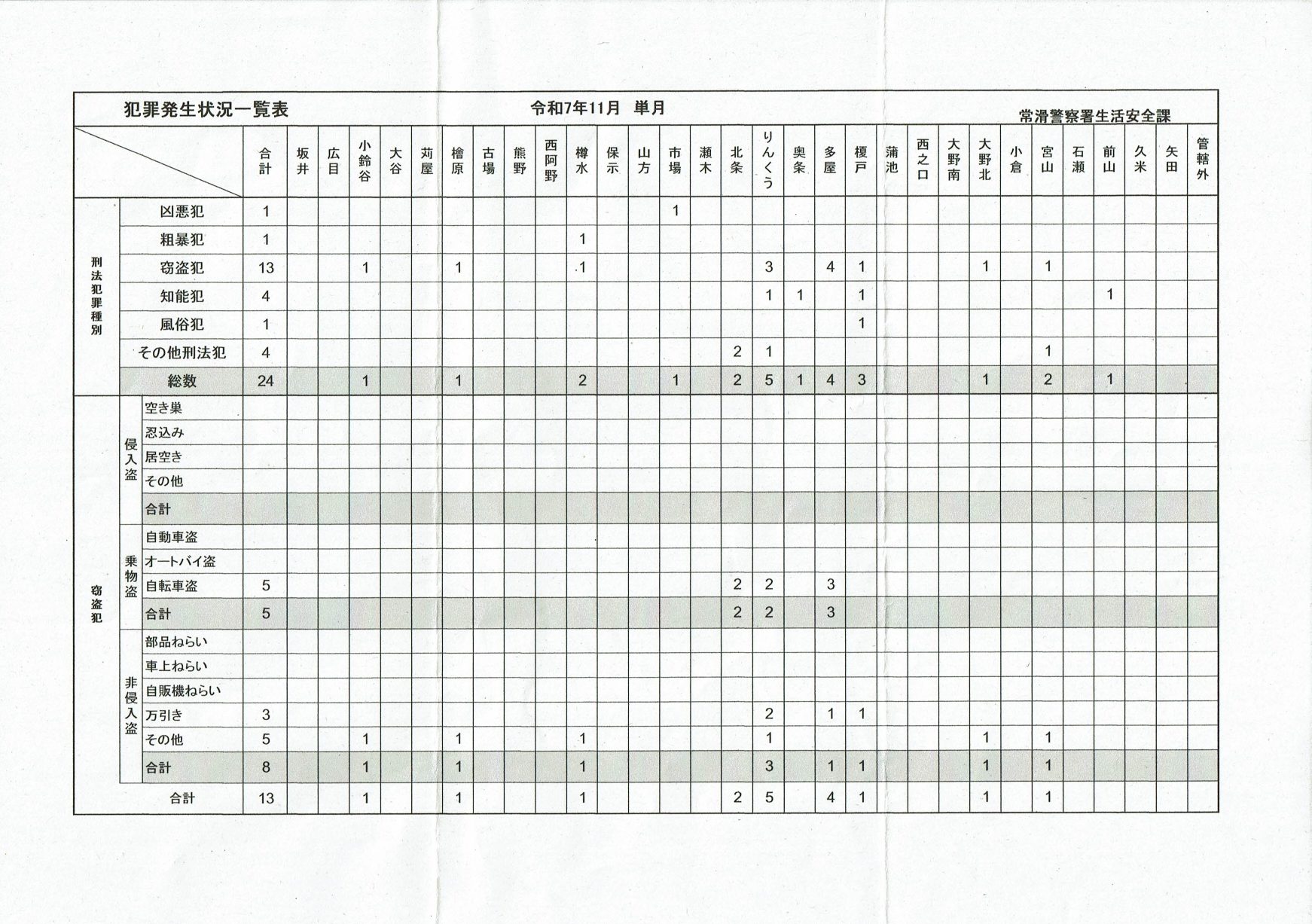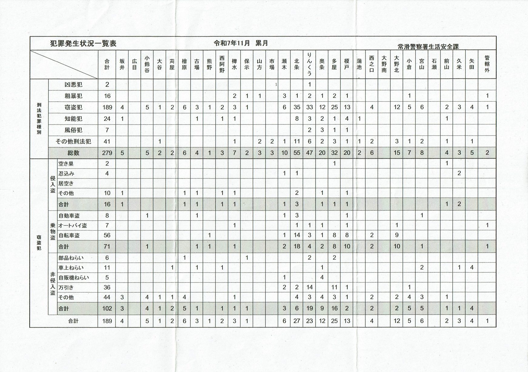 令和7年11月 犯罪発生状況